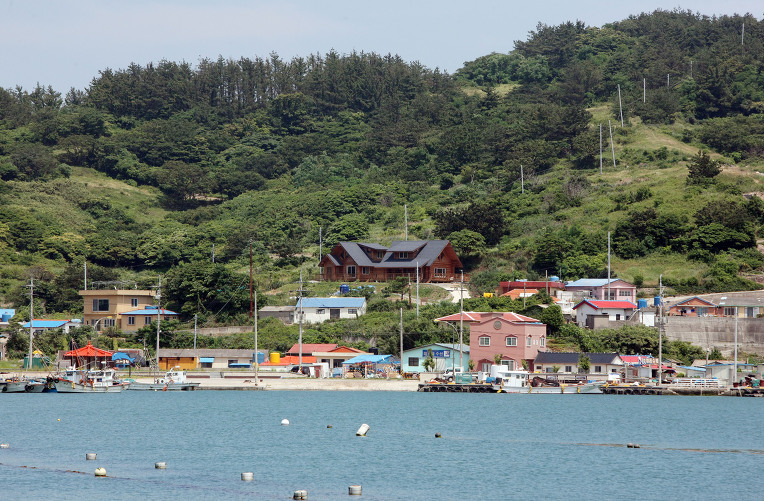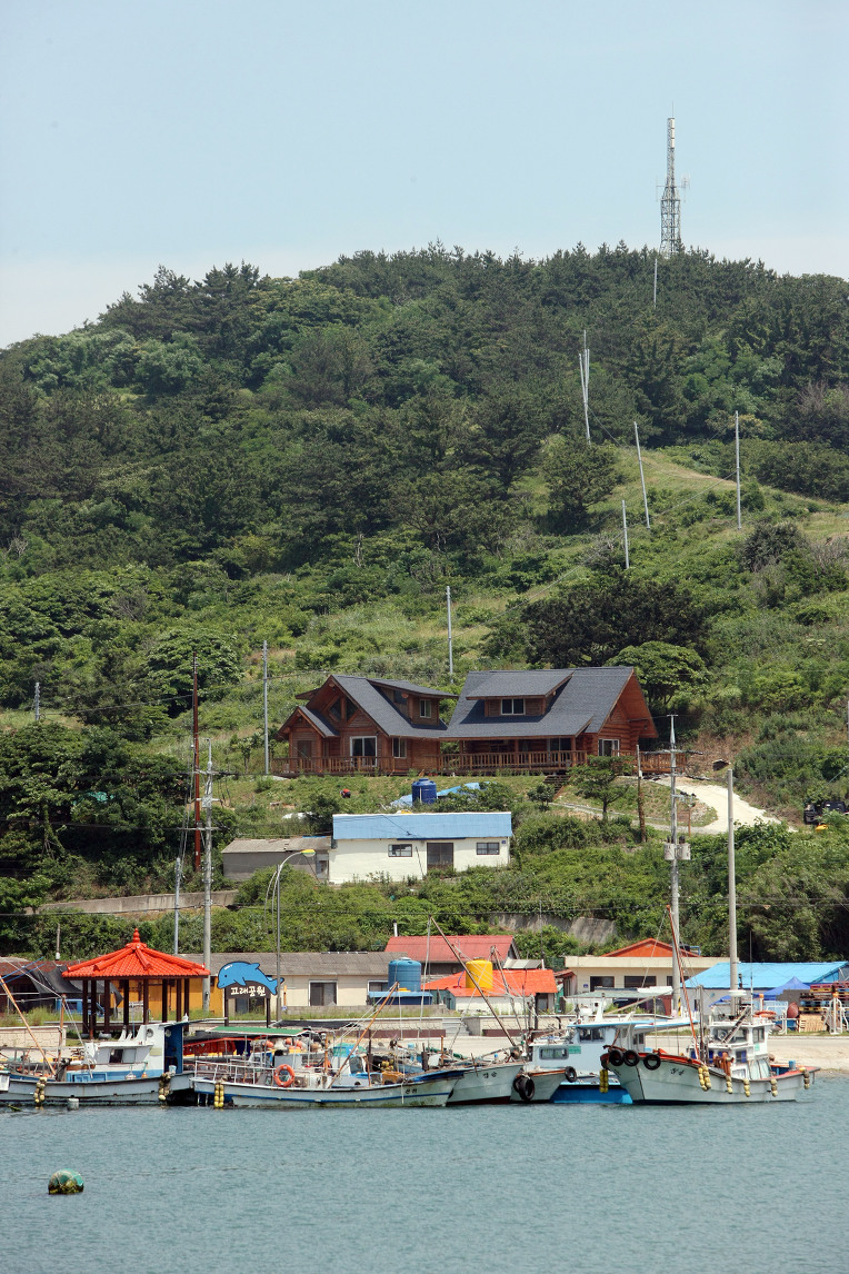 예리 흑산항 방파제 앞에 위치한 흑산 군도 유일에 통나무 펜션입니다.